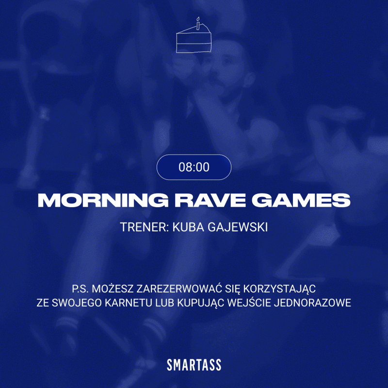 Poranna, urodzinowa edycja treningu z okazji 2 lat Smartass — w klimacie rave i pod autorski playlist. Po treningu każdy uczestnik otrzyma kawę w Smartass Cafe (przelew) — wystarczy wymienić opaskę na kawę.